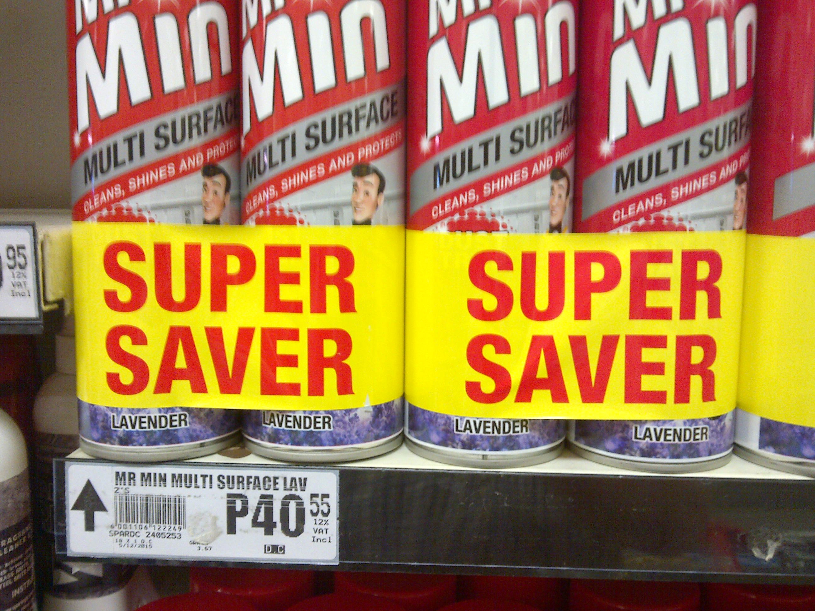 Now we can move on to SUPER SAVER offers on Mr Min furniture polish: